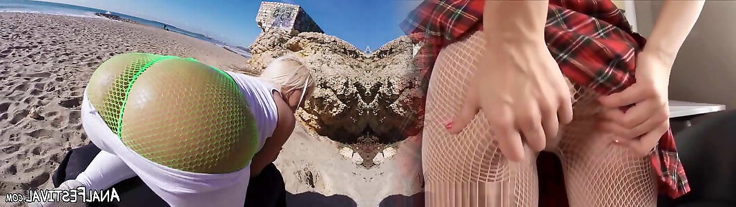 Massive bootie blond Blonde Fesser throatfucked on the beach