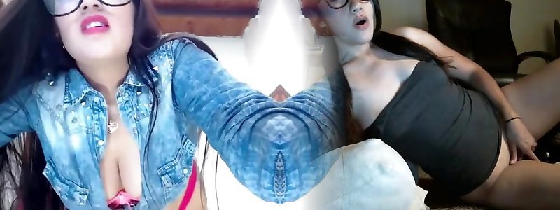 Long-haired Asian bombshell pleases herself with frigging