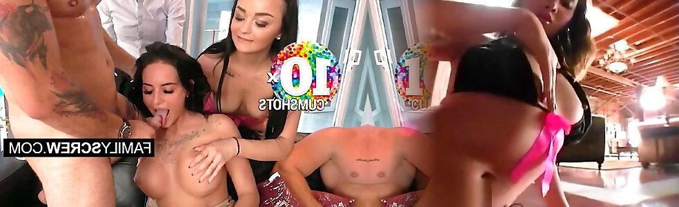 Hot teens both suck grandpa cock in the same time and swallow his sweet jizz