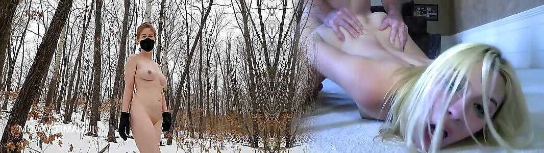 Sex in the winter snowy forest, beauty got hot cum on her face