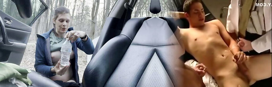 Milf gives handjob in a car on a highly frequented parking lot - risky in public