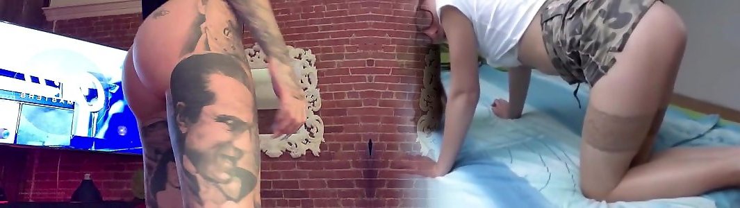 Domination & Submission super-bitch with tat Bangs and inhales her lover’s beefstick