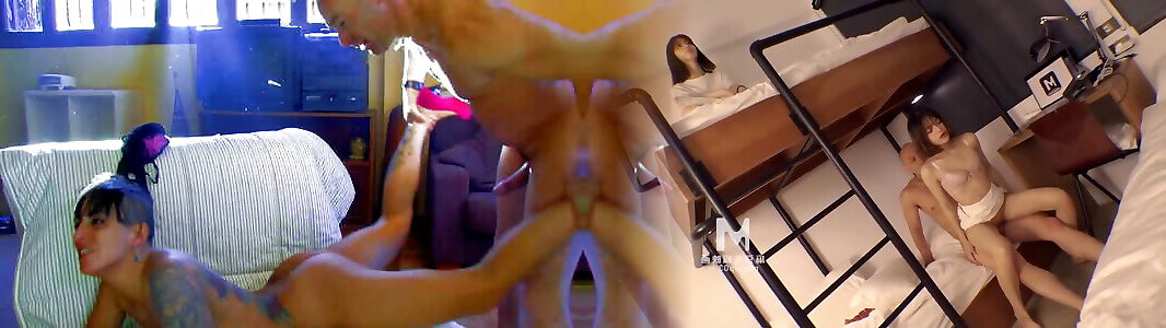 Faux Hostel - Fantastic brunette with tats finds a dummy stuck in his bunk sofa ladder
