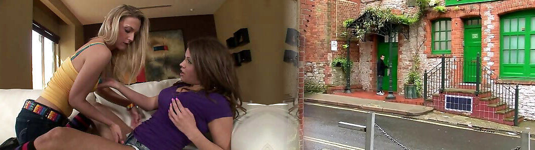 Tatted teen girl-girl getting screwed with a fake penis
