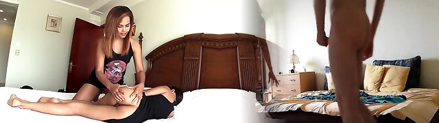 Long Legged tall ladyboy Korra Del Rio fukcs anal hole and deep facehole of bisexaul dude