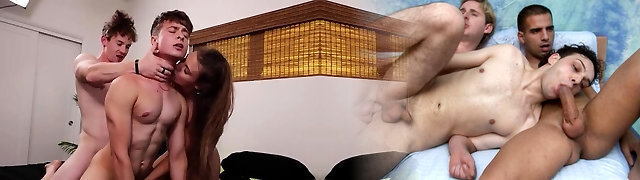 Bisexual dudes cum on each others daces and penetrate sex-attractiveness milf Angel Wicky