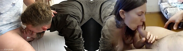 Amazing lond bi-atch makes a horny dude to suck the dick of the other stud