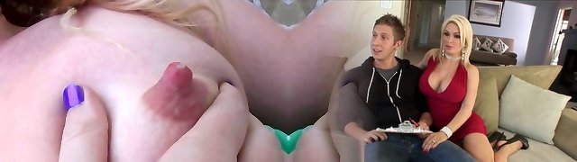 Sexy llatinum-blonde mommy exposes her truly big boobs in my car