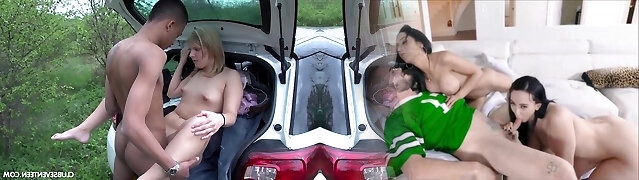 Mischievous trollop with saggy braests agreed to have orgy in my car