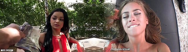 Super sluty dark haired girl gets fukced doggystyle by a stranger