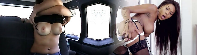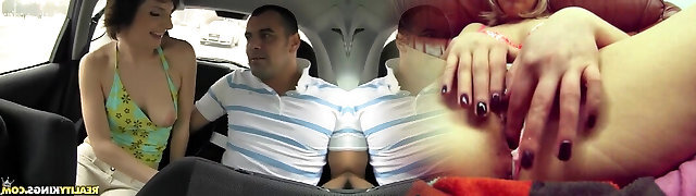 Gorgreous girl gets her coochie fukced by a taxi driver in the van