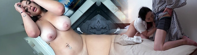 Curvy Big-chested Laina Pleased Her Step-bro With BJ, Tit Job & Hot Sex, After Catching Him Wanking On Her