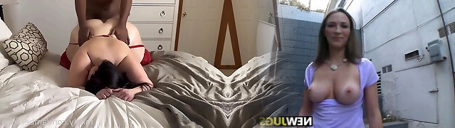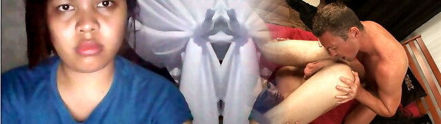 Chubby housewife, Melany loves lying on the bed, while a nasty guy is liking her wet pussy