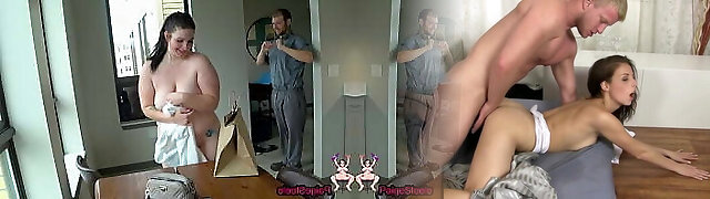 German BBW Teen Elisa caught Masturbation and Heopkp with Plumb