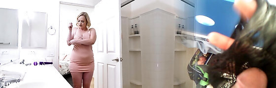 Round step-mother with a vibrator occupie the bathroom for a long time