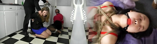 Babe is bound up and given a couple of rock-hard dick to pleasure