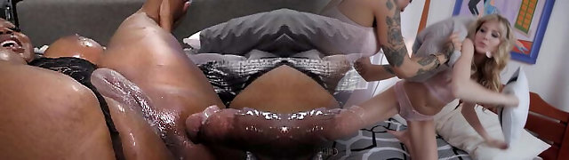 Ebony romp bomb MILF shares cock with Asian daughter lCara Trinity