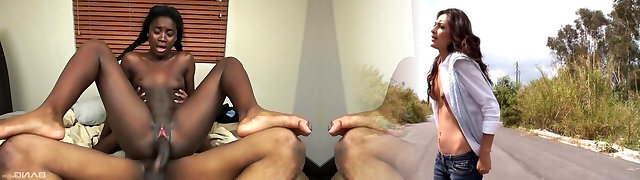 Hot slim ebony teenage honey takes shite cock in both holes live