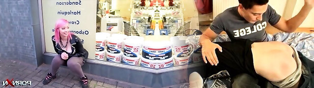Kinky pink haired emo girlie in tight yoga pants urinates outdoosr for fellow