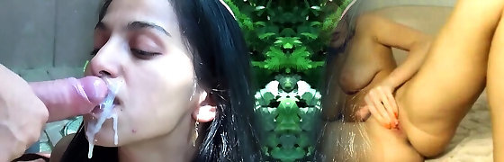 Uber-cute nubile get facial after sucking and rixing hard cock live