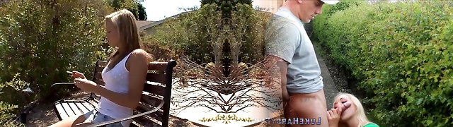 Talkative and flirty busty blond whore Skylar Vodx gonna blow lots of cocks
