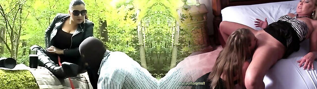Femalew Dominance lady Melania dominates slaves
