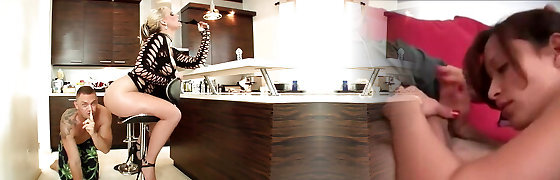 blond beauty enjoys her free time in a superb and f7nny company