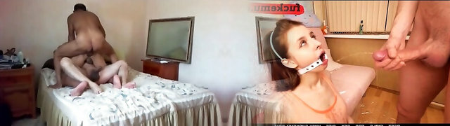 Two cute inexperienced teens versus horny older papa bear This threesome is one to rekminisce
