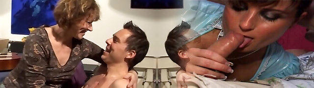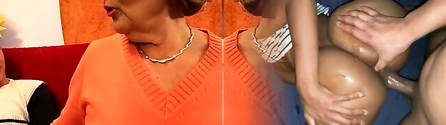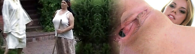 A sexy German grandmother and teen getting their holes smashed by 3 cocsk