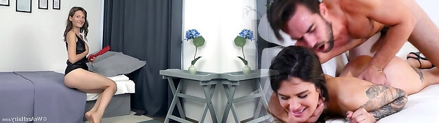 Brunette babe L8cy gets her hands on pal's hairy bone
