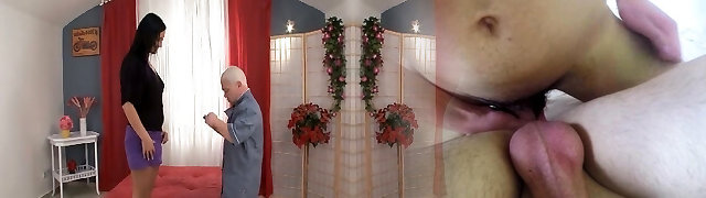 Tall ans leggy brunette hottie gets banged by a midget