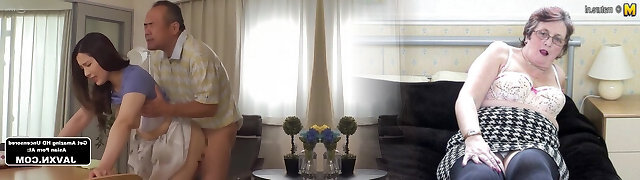 AMATEUR EURO - Horny Grasnny Pounded By Her Fat Husband