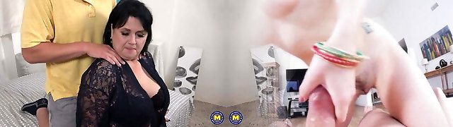 This b4runette milf fukcs a young guy hard