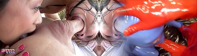 Two lewd bi-otches give simultaneosu rimjob and oral fukc