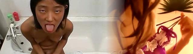 Korean girls gets wasehd and shaved by an elder guy she pounds