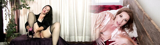 Redhead mature Isabella Lui spurts her shorts to knsert toys