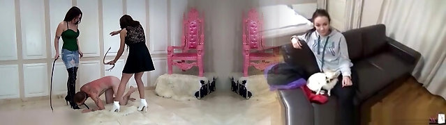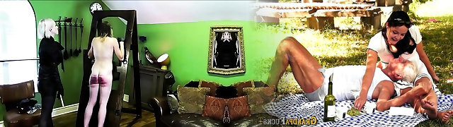 Brunette girl gets tied up before a dominatrix commencs punishing her