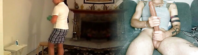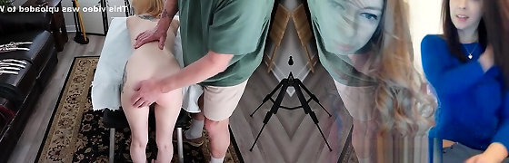 Perverr step-dad disciplines his stepdaughter for bad marks
