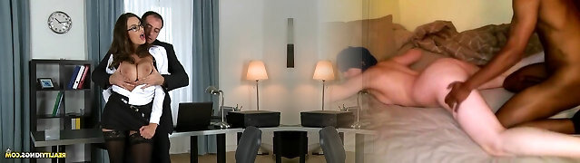 Beautiful busty boss with big bubble btut is ready for hardcore threesome