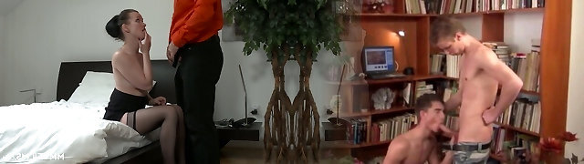 Mommy in stocking seduecd her sonny in vaginal fukcing in the livin...
