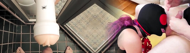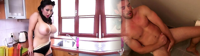 Cam doopkll rides dildo in kitchen