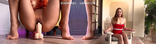 Redhead teen rides her creamy hneypot on a big dildo to shaking orgasm