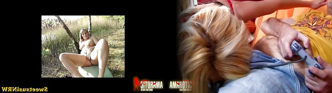 Blond in homemade vid with puny bra-stuffers and six pack gobbling out