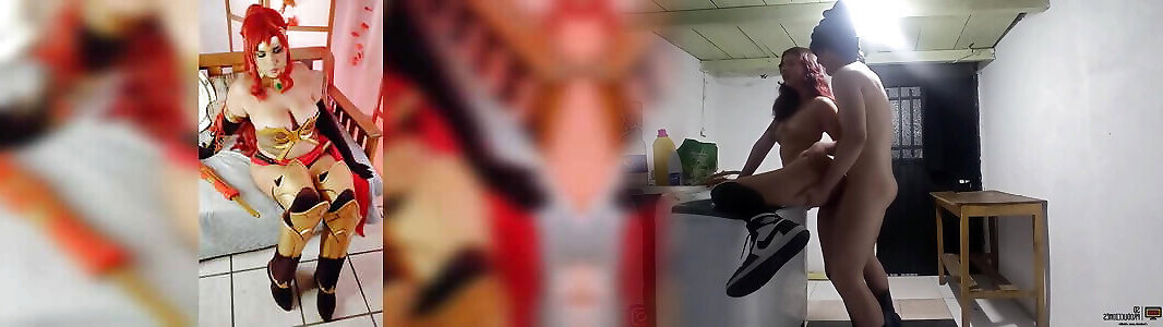 Sexy Latina Swallows Two Huge Cocks While Cosplaying