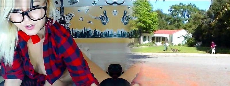 Hipster cockslut has jizm little girl suck pussy all over her glasses