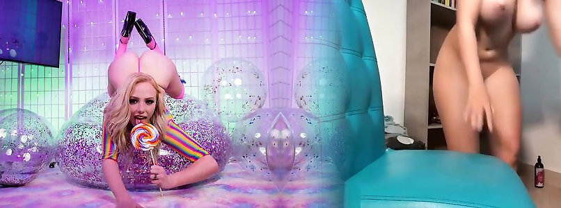 Crazy blondie inhales spear on the bed