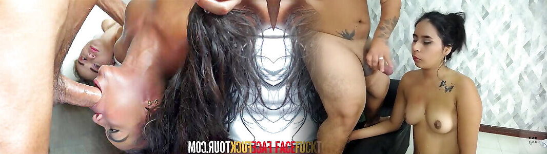 Face Fuck Tour - Petite Latinas Guzzling Big Dick In FFM Threesome