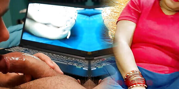 Watching my porn while giving handjob