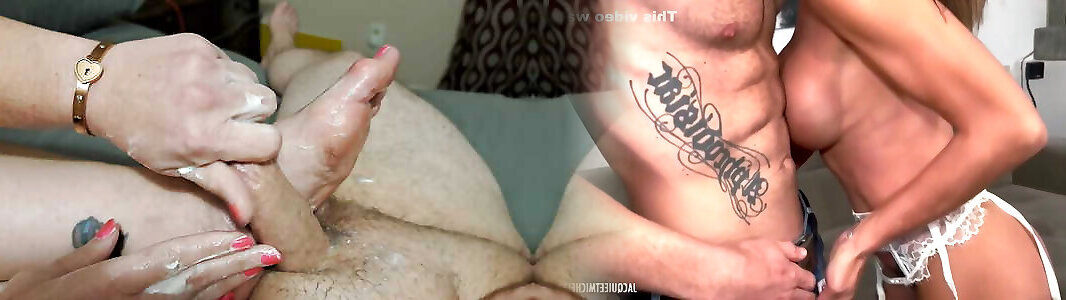 Mother-in-law does manual stimulation of my oily cock before cumshot