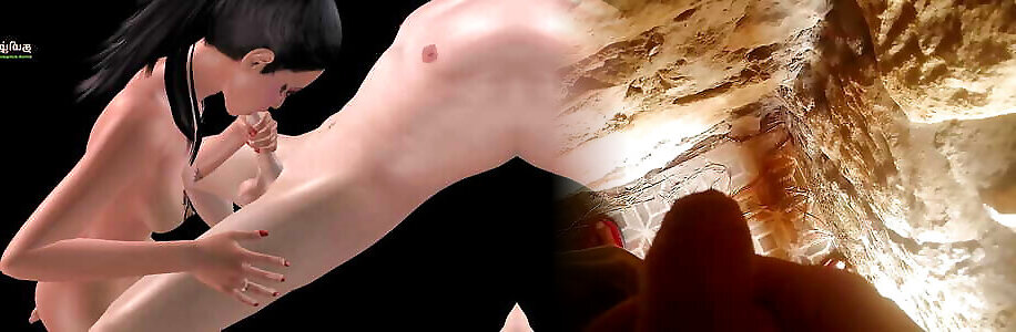 An animated cartoon porn video of a beautiful Indian girl having oral sex with a Japanese man